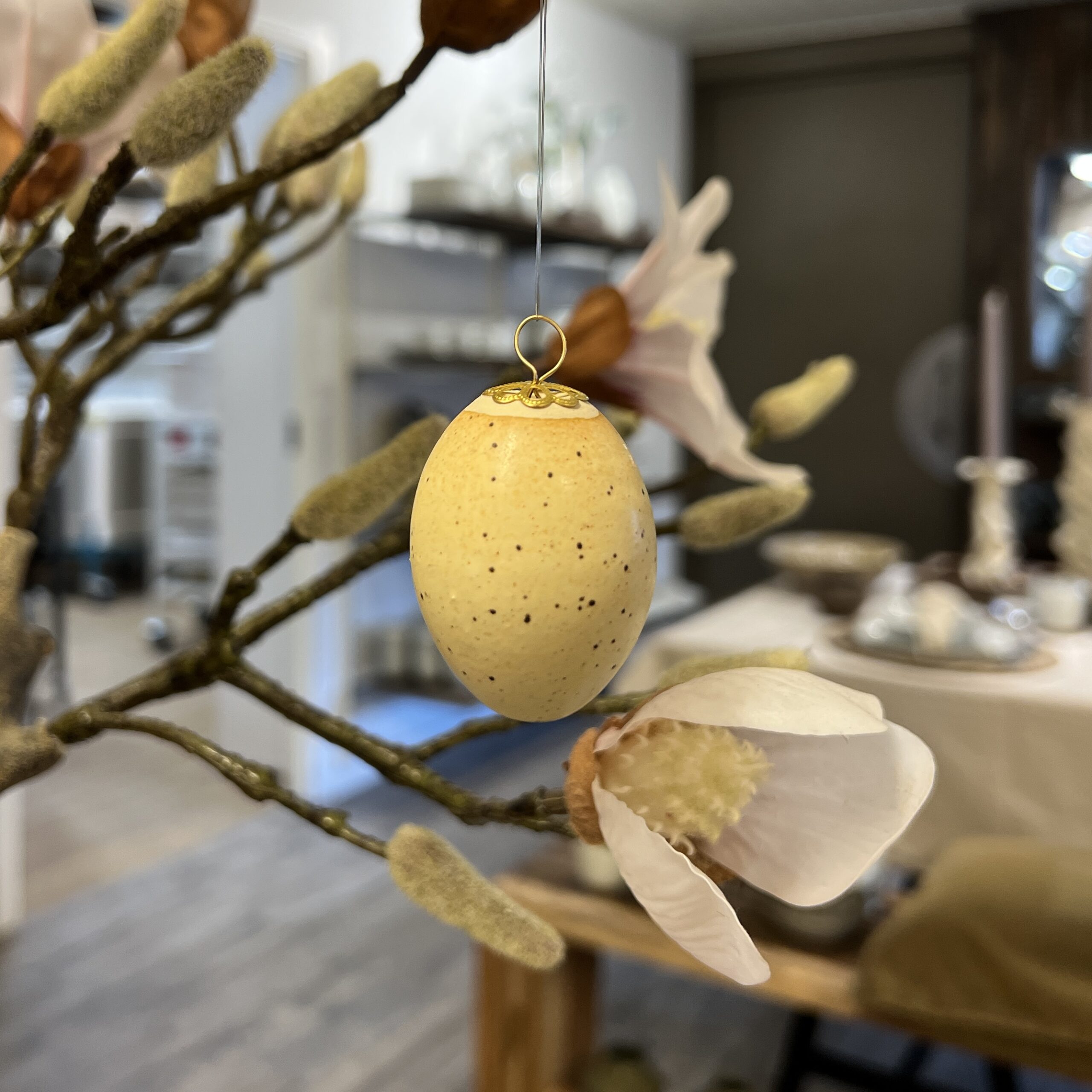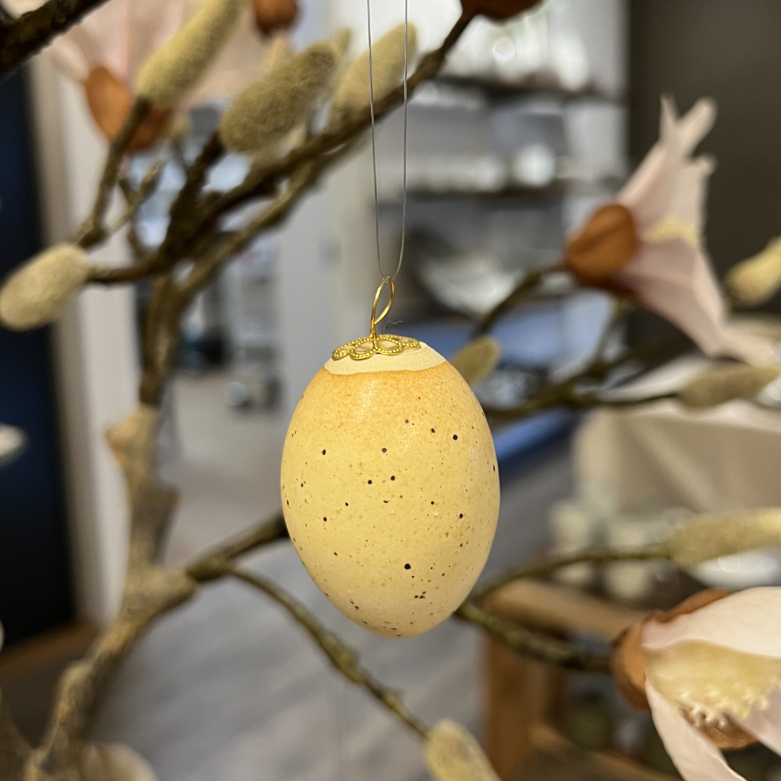 Søde små æg som kan hænges på grene eller pynte i dekorationer.