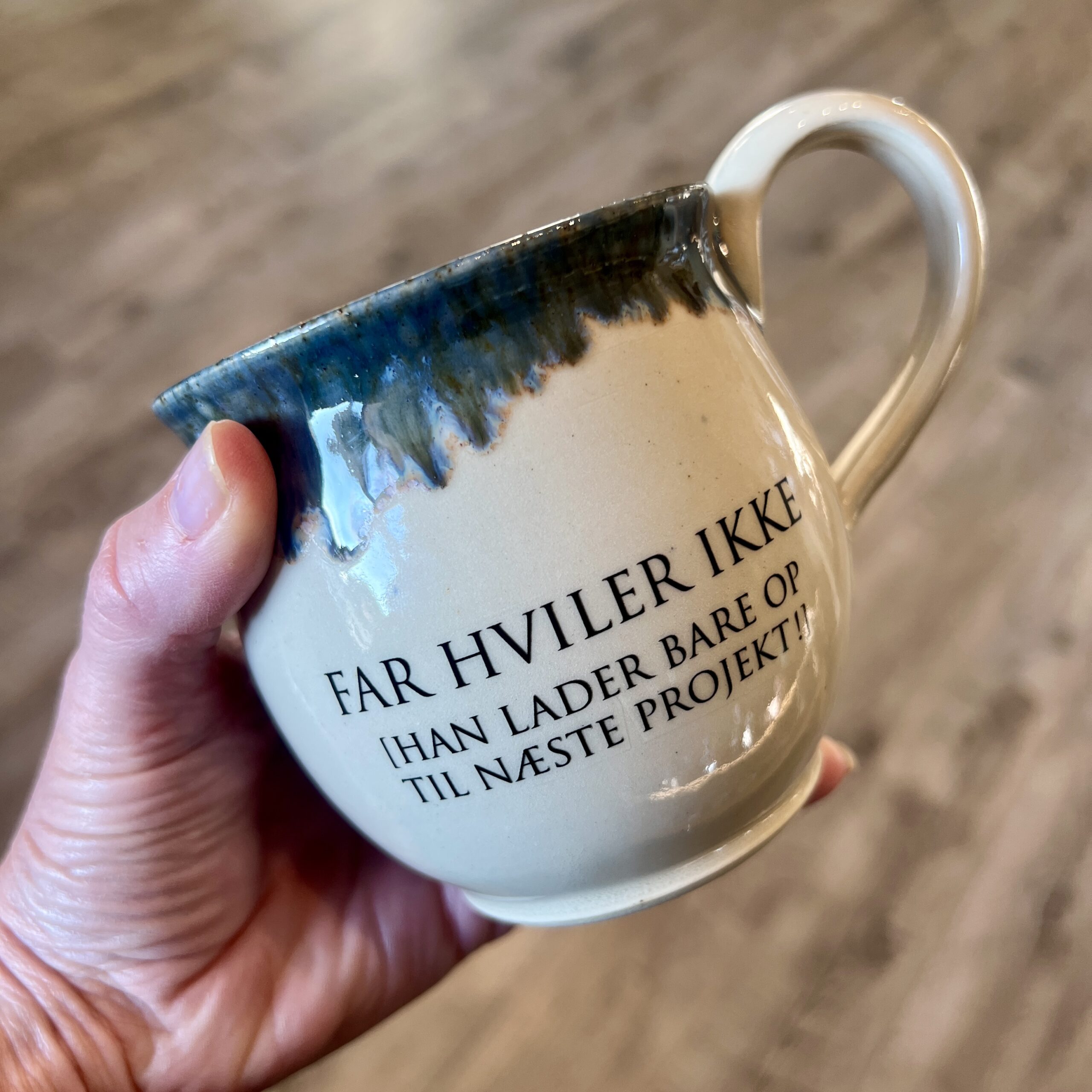 Overrask din FAR med et håndlavet navnekrus, skabt med kærlighed og omtanke. Hver kop er unik og bærer et personligt budskab, der spreder varme i hverdagen.