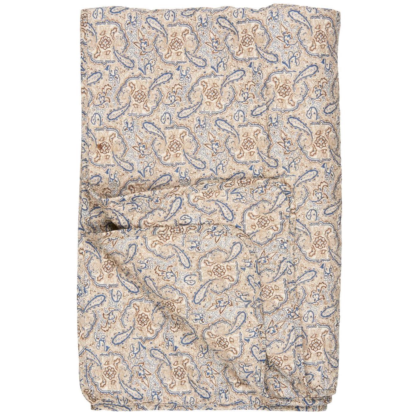 Quilt med blåt, brunt og sandfarvet paisleymønster